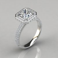 Trio Micro Pavé Princess Cut Halo Engagement Ring (107w)