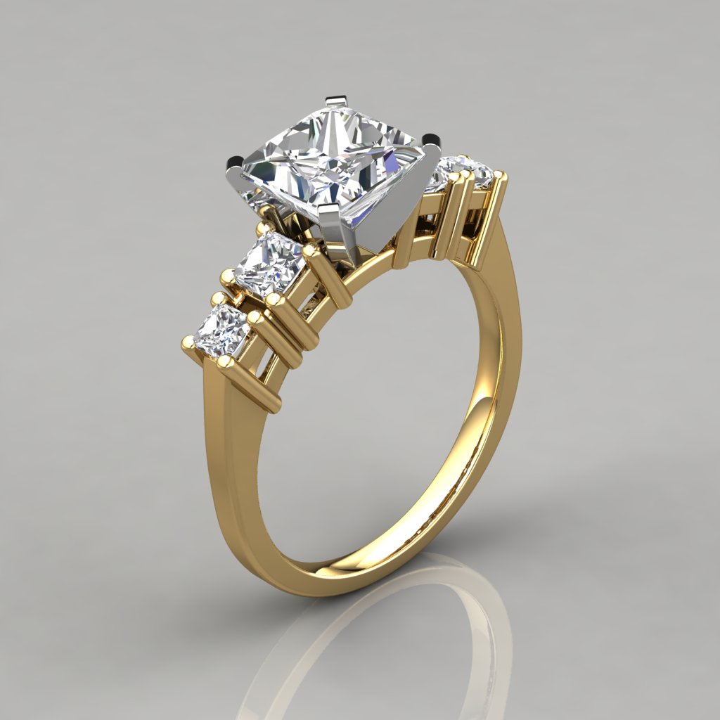This Magnificent Five Stone Princess Cut Engagement Ring is made to order in Platinum, 14K or 18K White, Yellow or Rose Solid Gold.