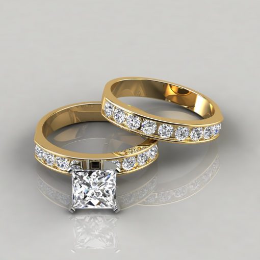 This Magnificent Princess Cut Engagement Ring and Wedding Band Set is made to order in Platinum, 14K or 18K White, Yellow or Rose Solid Gold.