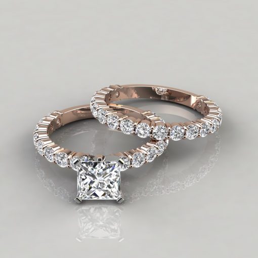Princess Cut Shared Prong Engagement Ring and Wedding Band Set