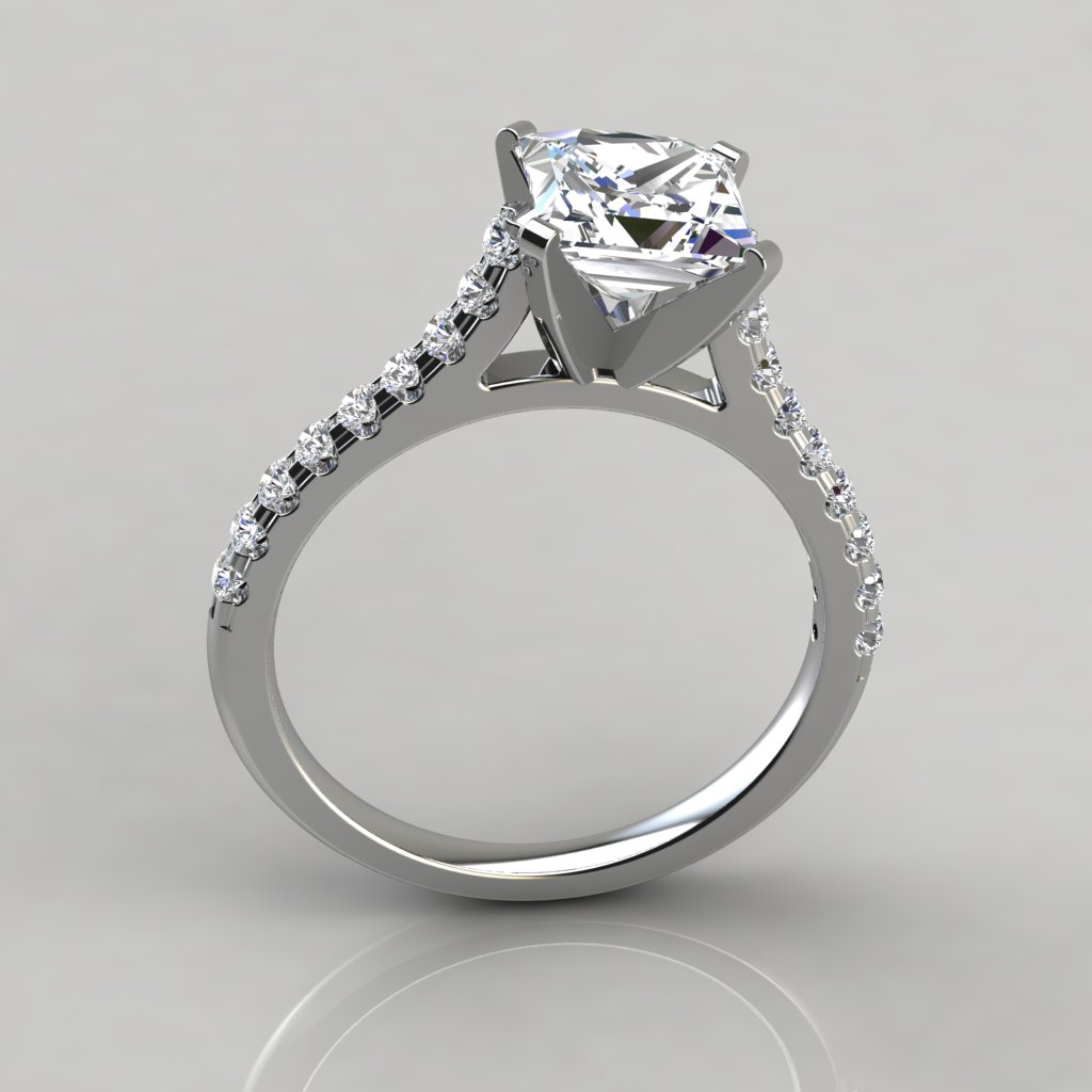 It can be customized to your exact specifications to accommodate a center stone from 1.0 to 2.0 carats and It comes as pictured with an additional 0.30Ct Round Brilliant Cut in side stones.