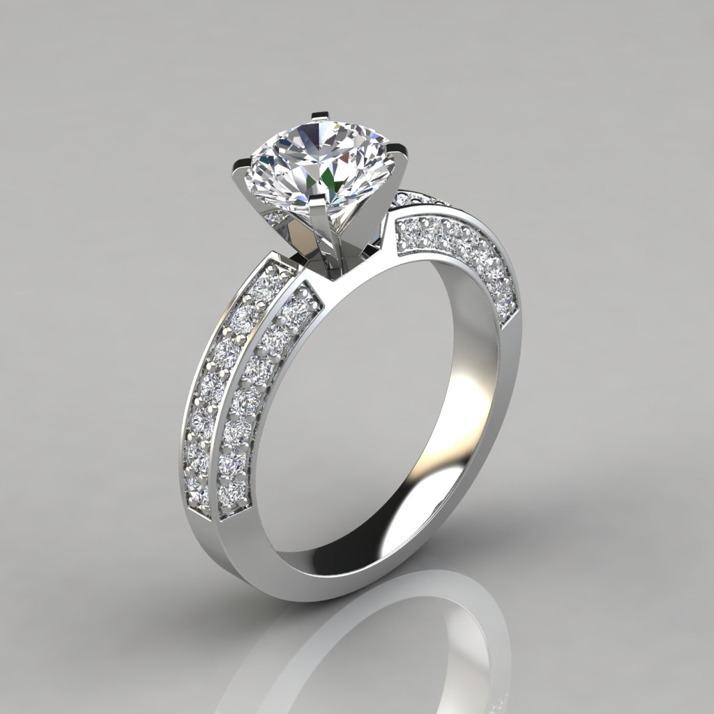 This Elegant Split Three Sided Pave Engagement Ring is made to order in Platinum, 14K or 18K White, Yellow or Rose Solid Gold.